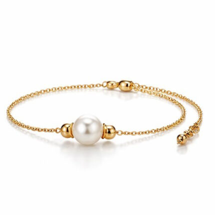 Stainless steel (gold plated) chain bracelet with 10mm shell pearl and slider clasp